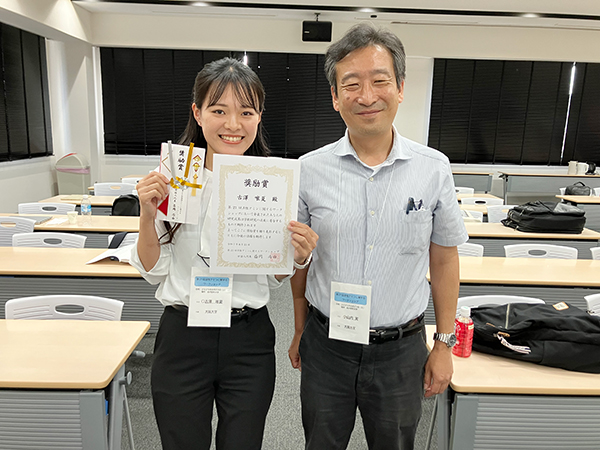この賞は、日本の臨床検査技師養成校がすべて集まる学会で、優秀な研究発表を行った学生に授与される賞で、実際の発表や質疑応答で審査されます。