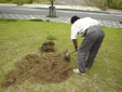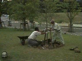 記念植樹(向かって右側のハナミズキの植樹作業) 平成10年6月24日実施