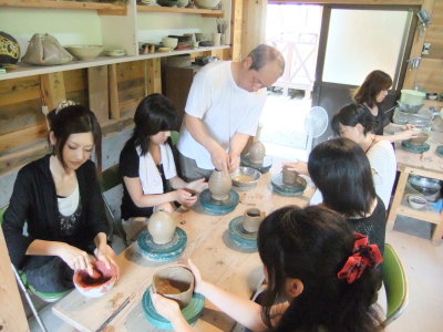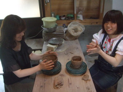師匠大忙し。ほぼ師匠製作になってしまった作品も多数・・・ 森田は器ではなくてランプシェード。丁寧に穴を開けていきます。完成品はこちら それを見た隣の稲岡「私も穴開けた〜い!」(←花瓶を作っているはず) 師匠「えらい個性的な・・・これはロクロいらんなあ・・・」→完成品はこちら